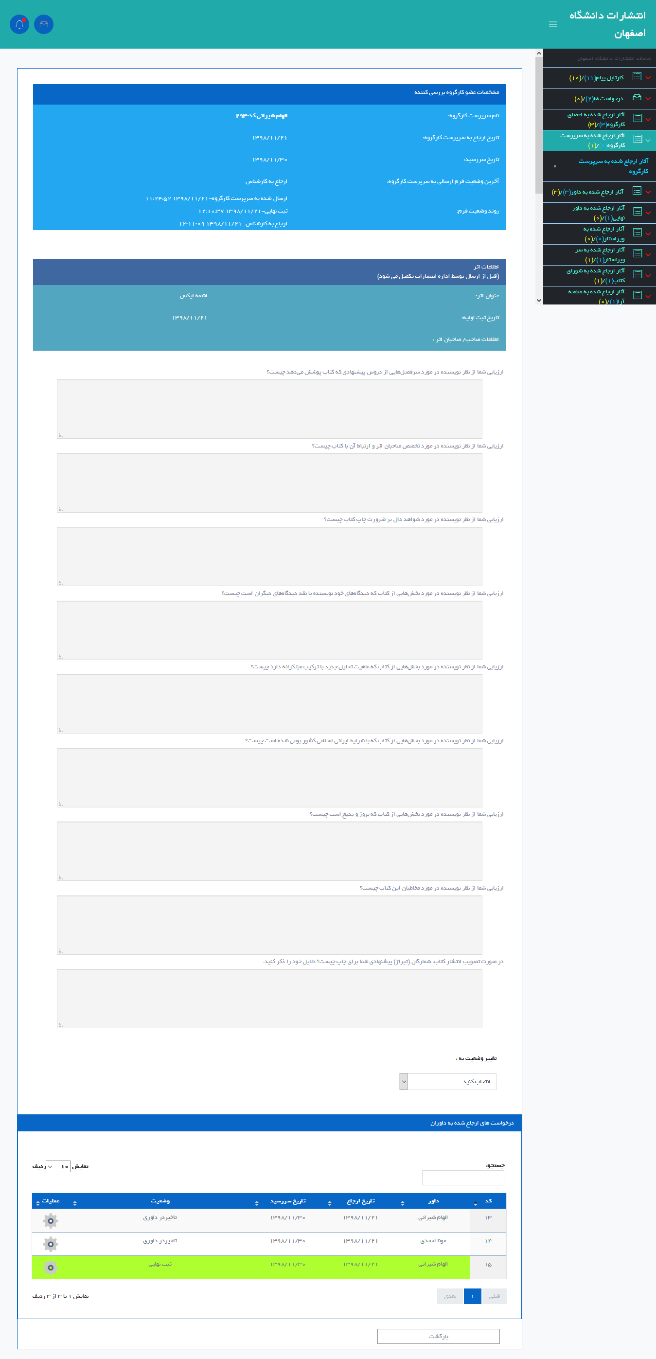 دراین جدول آثاری که سرپرست کارگروه ارجاع شده است نمایش داده می شود