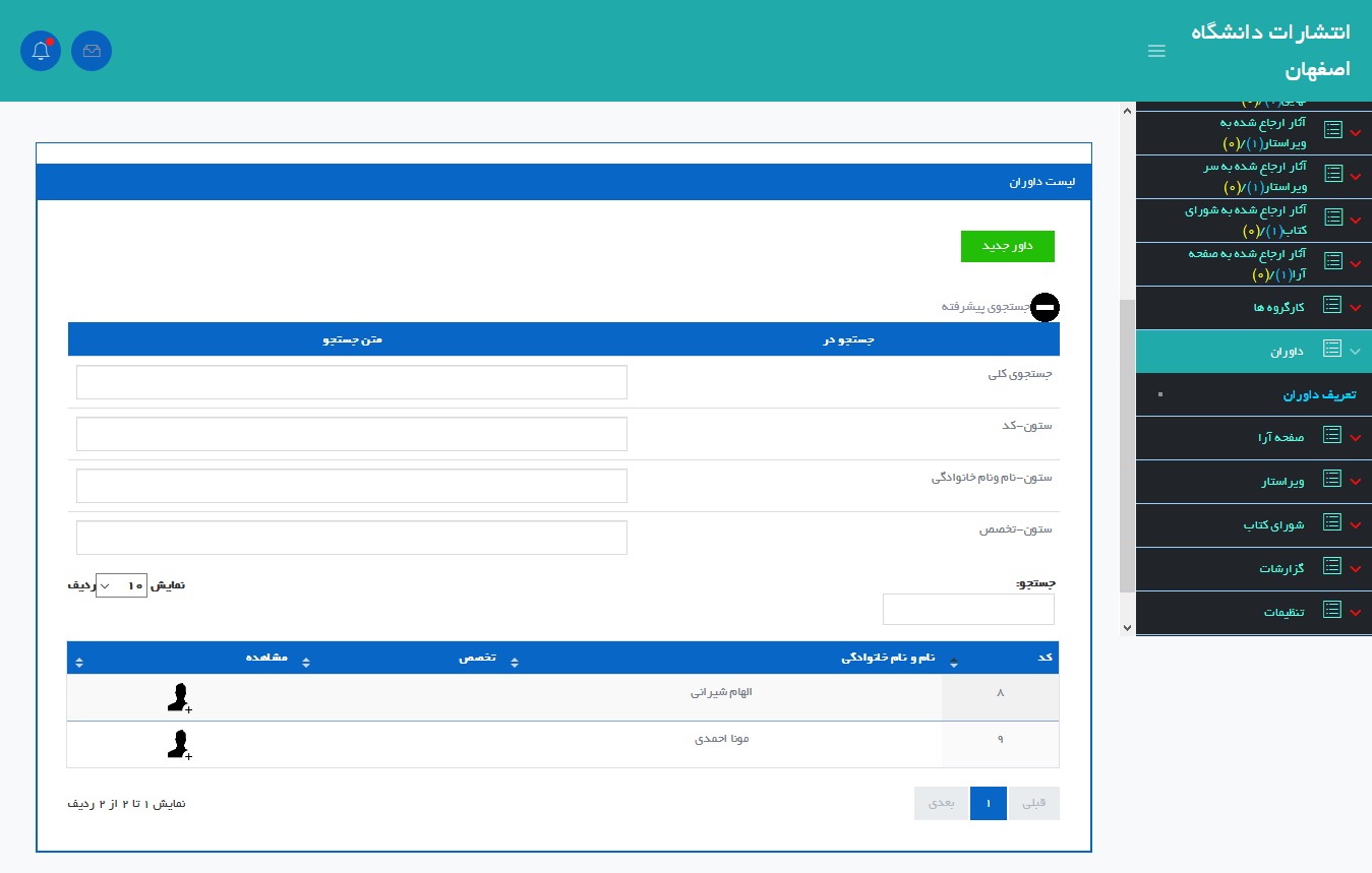 دراین قسمت میتوان از جدول لیست کاربران فردی را به عنوان عضو داور