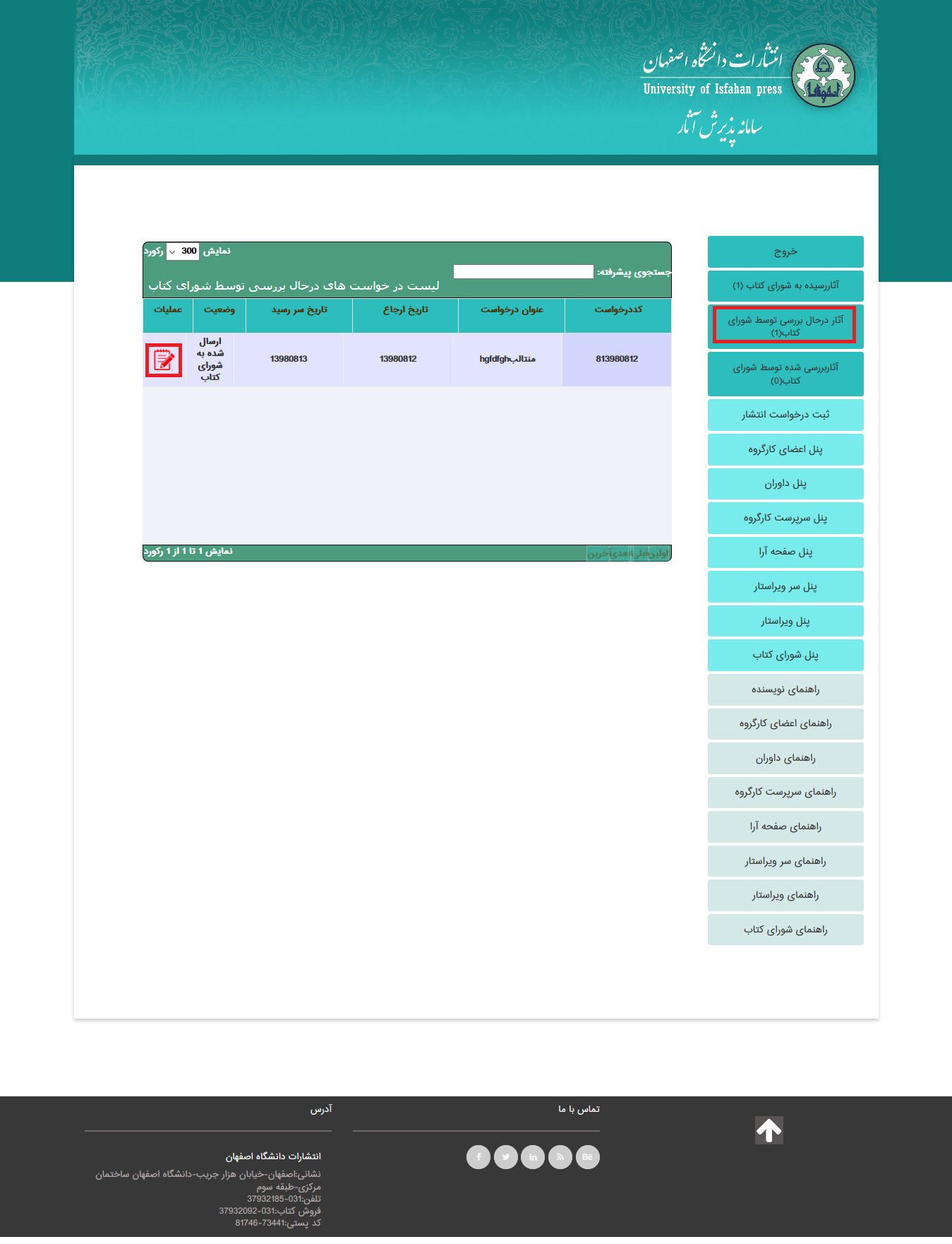 درخواست هایی هستند که به عضو شورای خاصی رسیده است وآن درخواست در وضعیت ثبت اولیه یا تاخیرنظرات توسط عضو شورای کتاب قرار دارند